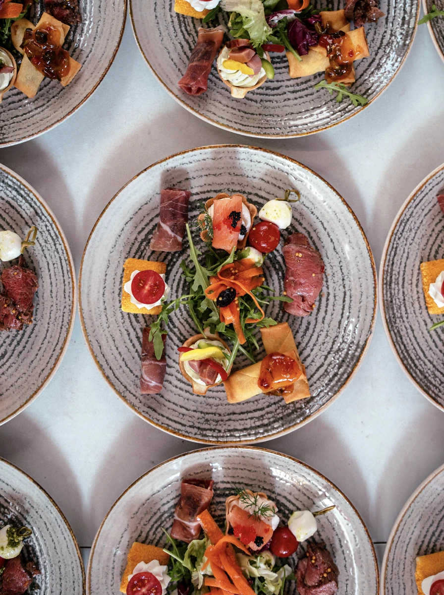 Nu avem un meniu prestabilit pentru că știm că toată lumea are gusturi diferite. Pregătim orice, de la preparate clasice la opțiuni mai neobișnuite pentru evenimente: burgeri cu cartofi prăjiți, tacos, sushi sau sandwich-uri gourmet. Meniurile țin cont și de eventualele restricții alimentare ale invitaților: preparate fără gluten, fără lactoză, vegane sau vegetariene. Putem pregăti și meniuri pentru copii, cu porții suficiente și pe gustul lor.